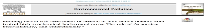 ※ IF=9.8: Mengying Li,Zheng Chen,Qing Xiong,et al. Refining health risk assessment of arsenic in wild edible boletus from typical high geochemical background areas: The role of As species, bioavailability, and enterotoxicity. Environmental Pollution,2023 Oct 1:334:122148.