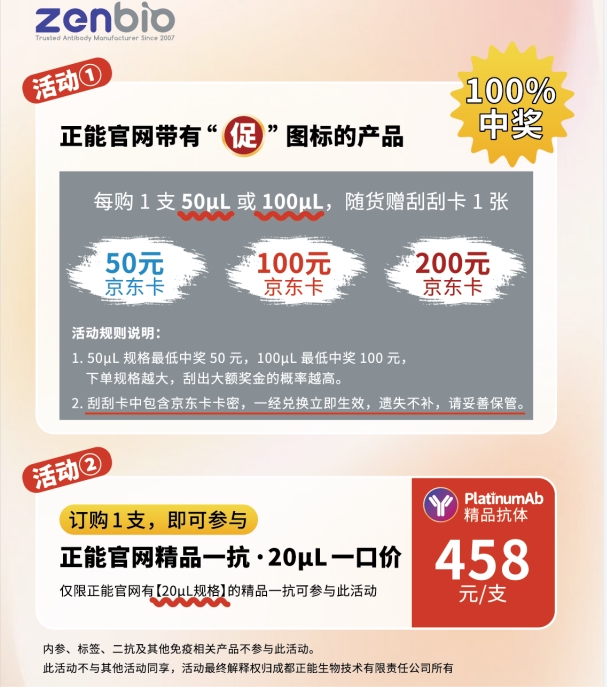 正能抗体赠送刮刮卡(最低50元)促销活动:2024.5.1-2024.6.20