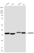 Glyceraldehyde 3 phosphate dehydrogenase (GAPDH) is well known as one of the key enzymes involved in glycolysis. GAPDH is constitutively abundant expressed in almost cell types at high levels, therefore antibodies against GAPDH are useful as loading controls for Western Blotting. Some pathology factors, such as hypoxia and diabetes, increased or decreased GAPDH expression in certain cell types. |