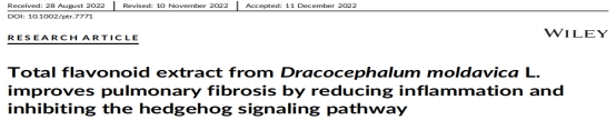 ※ IF=7.2: Cheng-Hui He,Wei Wang,Ghulam Jilany Khan,et al.  Total flavonoid extract from Dracocephalum moldavica L. improves pulmonary fibrosis by reducing inflammation and inhibiting the hedgehog signaling pathway. Phytotherapy Research. 2023;1–14.