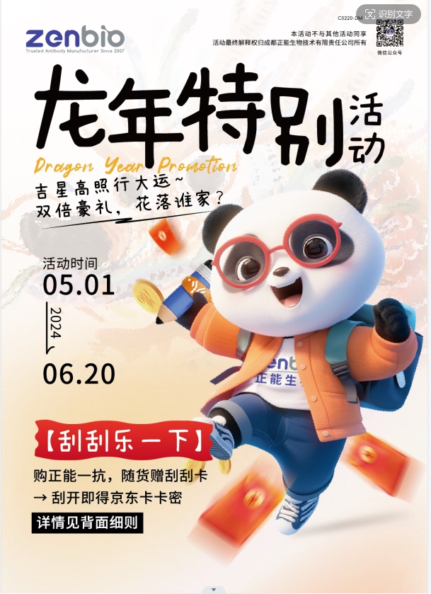 正能抗体赠送刮刮卡(最低50元)促销活动:2024.5.1-2024.6.20