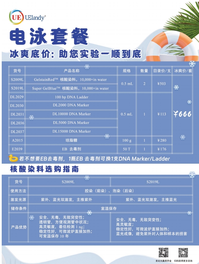 UElandy ¥666促销套餐:无毒核酸染料+DNA Marker+琼脂糖+EB去除剂