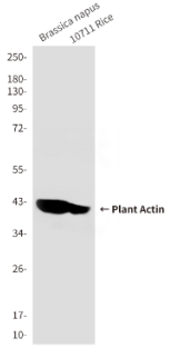 Product name: Plant Actin Mouse Monoclonal Antibody Isotype: IgG1 Form: Liquid Tested applications: WB Dilution Ratio: WB: 1:5000-1:10000 Species reactivity: Oryza sativa L,Brassica napus Host Species: Mouse Purity: Affinity purification |